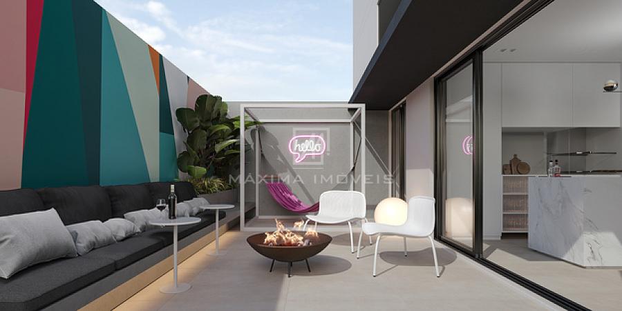 O prédio oferece lavanderia compartilhada, coworking, salão de festas, piscina e área gourmet.