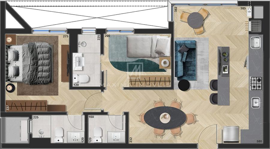 2 dormitórios (2 suítes)