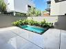 A churrasqueira, o lavabo e a área de serviço completam o pavimento, juntamente com duas vagas de garagem cobertas. O espaço se completa com lavabo, área de serviço, duas vagas de garagem e uma piscina privativa, ideal para momentos de lazer e relaxamento