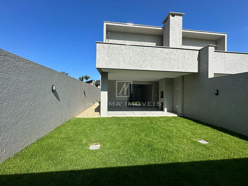 A garagem comporta 2 carros e o terreno de fundo de 42m² com churrasqueira e abertura de 7m é perfeito para momentos de lazer com a família e amigos.